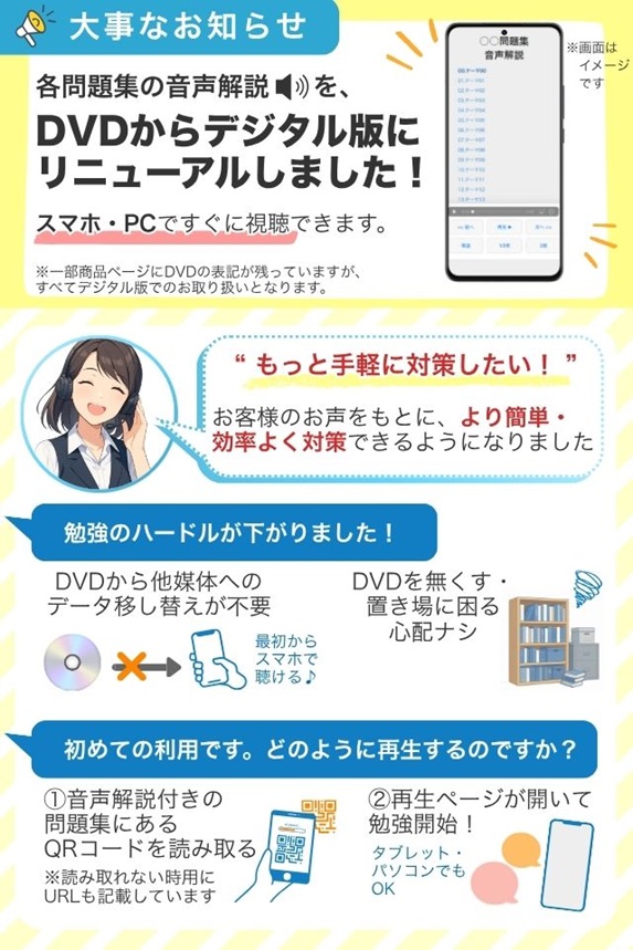 1問あたり5分前後の音声解説で、勉強にブランクのある方でもスムーズに解き方を身につけて頂いております。